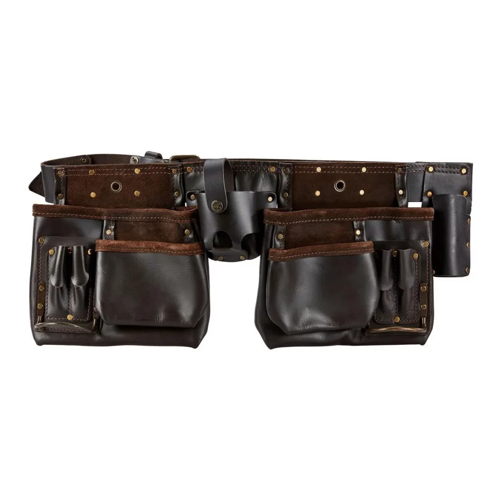 Lleva herramientas, sujetadores y accesorios con este cinturón de ajuste cómodo. Fabricado en cuero curtido al aceite resistente a grietas, desgarres y perforaciones. Incluye: