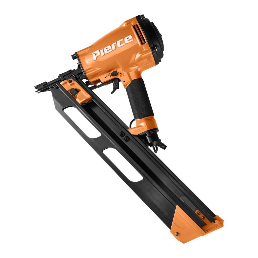 La clavadora para marcos de 21° tiene un cuerpo de herramienta de magnesio liviano para un fácil posicionamiento y control. Esta es una de las clavadoras para marcos más livianas de la industria, por lo que puede trabajar durante más tiempo con menos fatiga. Un disparador conmutable le brinda opciones sin complicaciones de modo secuencial único o disparo por contacto. El cargador maneja sujetadores de 2 a 3-1/4 pulgadas de largo.