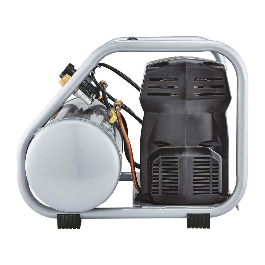 Este compresor de aire FORTRESS® es hasta un 30 % más ligero que otros compresores de su clase. No se deje engañar por su pequeño tamaño: este compresor de aire de calidad profesional ofrece hasta un 300 % más de tiempo de funcionamiento que compresores similares para el lugar de trabajo. Cuenta con un panel de control integrado con medidores fáciles de leer y dos acopladores de conexión rápida incorporados para ejecutar múltiples herramientas.