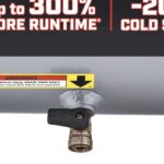 - Compacto y liviano, este compresor ofrece 4 SCFM a 90 PSI con una presión máxima de 200 PSI para hasta un 300 % más de tiempo de ejecución*.
