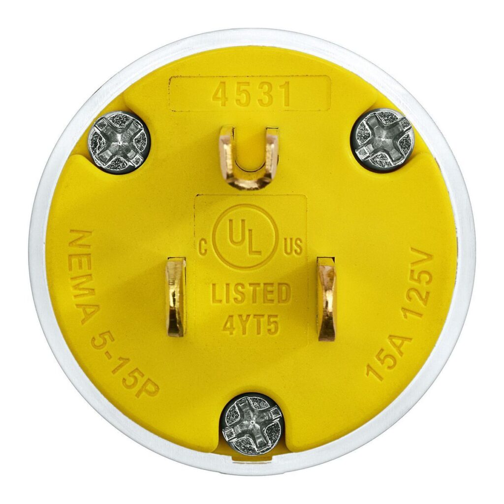 Este enchufe macho de tres cables de 12-18 AWG tiene una práctica luz indicadora que le permite saber cuando la línea está encendida.