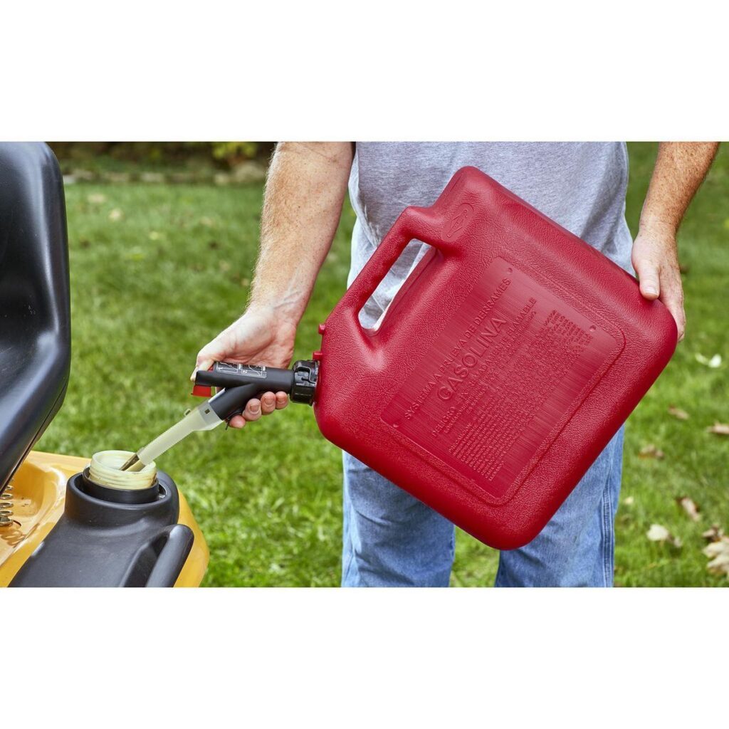 Este bidon de gasolina de 5 galones es perfecta para alimentar su equipo de gran potencia con una simple dispensación Press ‘N Pour®. Diseñado con FlexFMD (Dispositivo de mitigación de incendios) soldado permanentemente en el interior. Cuenta con un diseño de boquilla de apagado automático y ventilación automática y control de flujo de precisión para tanques de capacidad grande y limitada. Supera todas las normas de seguridad de ASTM, EPA, CARB y la Comisión de Seguridad de Productos.