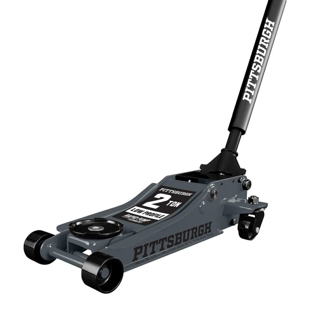 PITTSBURGH Gato Hidráulico bajo perfil 2Ton con BOMBA RÁPIDA gris oscuro