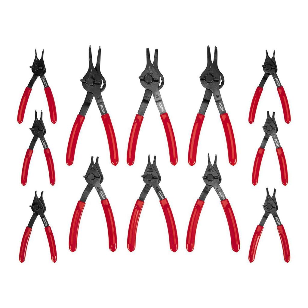 Juego de alicates para anillos de retención convertibles de cuarto de vuelta , 12 piezas.