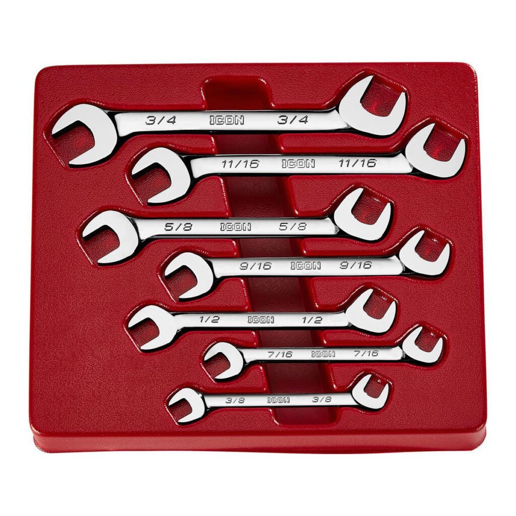 Este juego de llaves de boca tiene desplazamientos en ángulo de 30° y 60° para facilitar el acceso a los sujetadores. Las llaves funcionan en cuatro posiciones diferentes para una mayor maniobrabilidad en espacios reducidos. Como todas las herramientas manuales ICON™, estas llaves de boca están respaldadas por una garantía de por vida del fabricante sin complicaciones.
