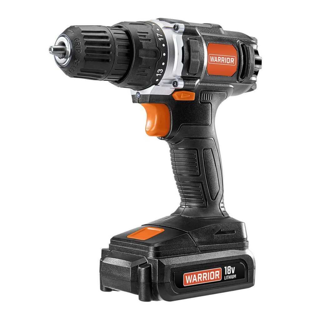 Este taladro destornillador inalámbrico tiene 20 configuraciones de embrague de torsión para realizar tareas de perforación en el hogar y el taller. Una lámpara LED incorporada proporciona visibilidad en rincones oscuros. Este taladro atornillador inalámbrico incluye una batería que es intercambiable con otras herramientas WARRIOR™ de 18 voltios.