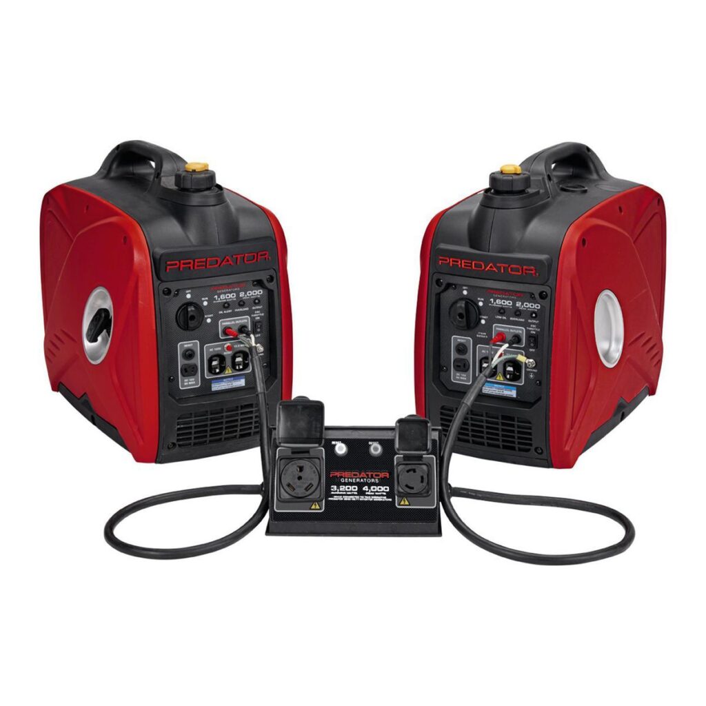 Obtenga el doble de potencia con este kit de generador paralelo PREDATOR™ de 30 amperios para generadores inversores. Las conexiones simples plug-and-go proporcionan una fácil configuración. El tomacorriente para vehículos recreativos NEMA TT-30R integrado y el tomacorriente con bloqueo giratorio NEMA L5-30R hacen que este kit paralelo sea ideal para uso en vehículos recreativos, campamentos o energía en el lugar de trabajo.