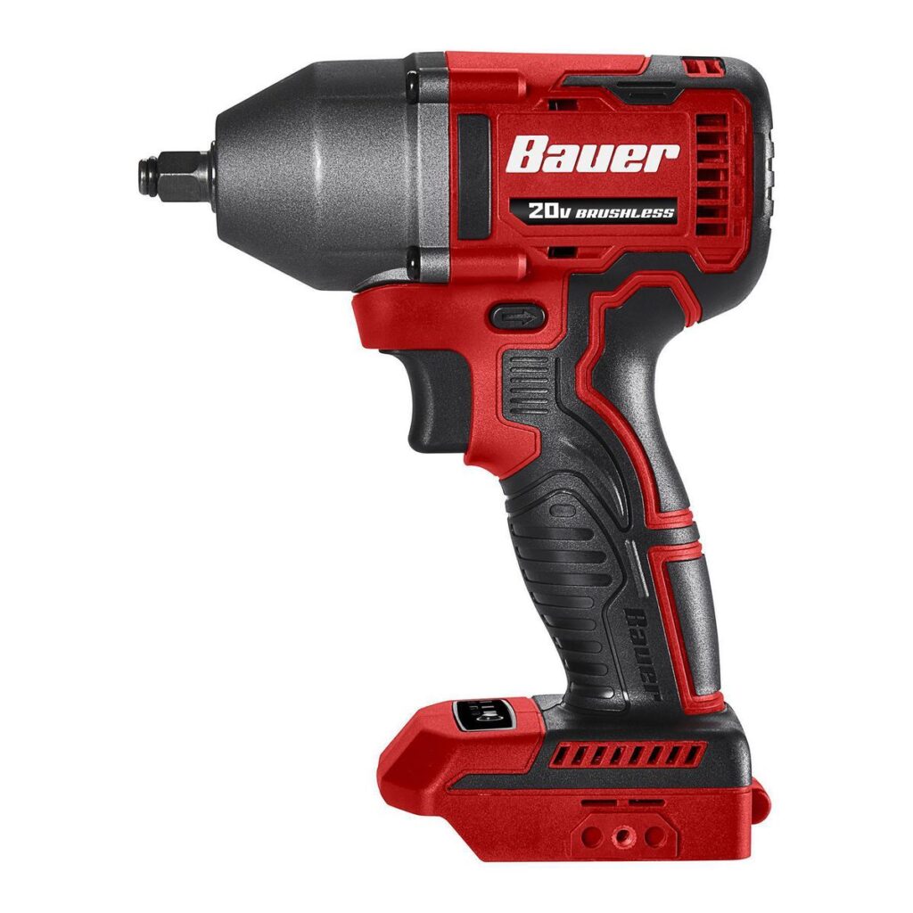 La llave de impacto de 3 velocidades, inalámbrica y sin escobillas BAUER™ de 3/8 pulg. está diseñada para brindar versatilidad y acceso en espacios reducidos. El motor de alto rendimiento produce 450 ft. lbs. de par de arranque de perno para quitar tuercas y pernos de cabeza con facilidad. Esta llave de impacto funciona con el sistema de batería de litio BAUER™ para una carga rápida y un tiempo de funcionamiento más prolongado.