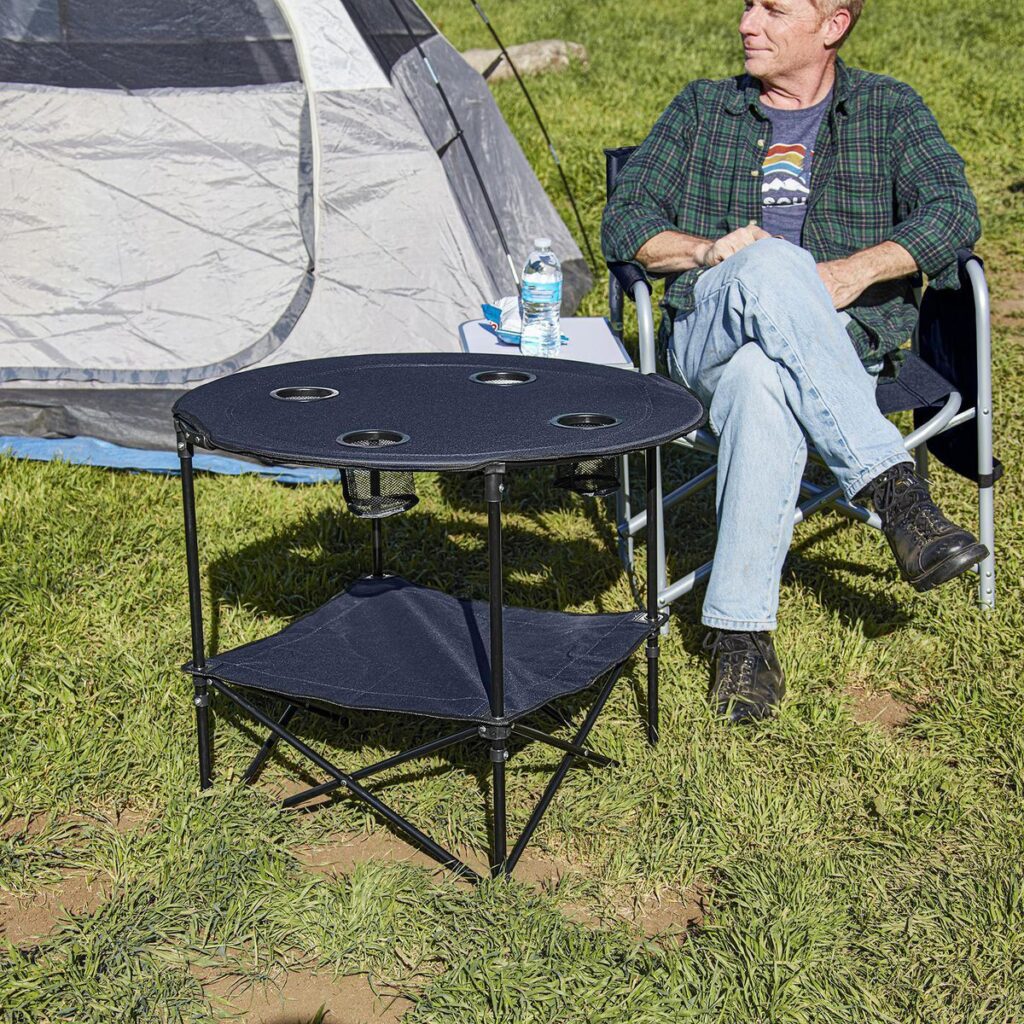 Aquí tienes una mesa para acampar que es perfecta para picnics, playas, parques, mochileros, eventos deportivos y paseos. Construida con poliéster resistente de 600 denier con un marco de acero, esta mesa puede soportar hasta 50 libras. La mesa se ensambla en segundos y se guarda fácilmente en el estuche incluido para facilitar su transporte.