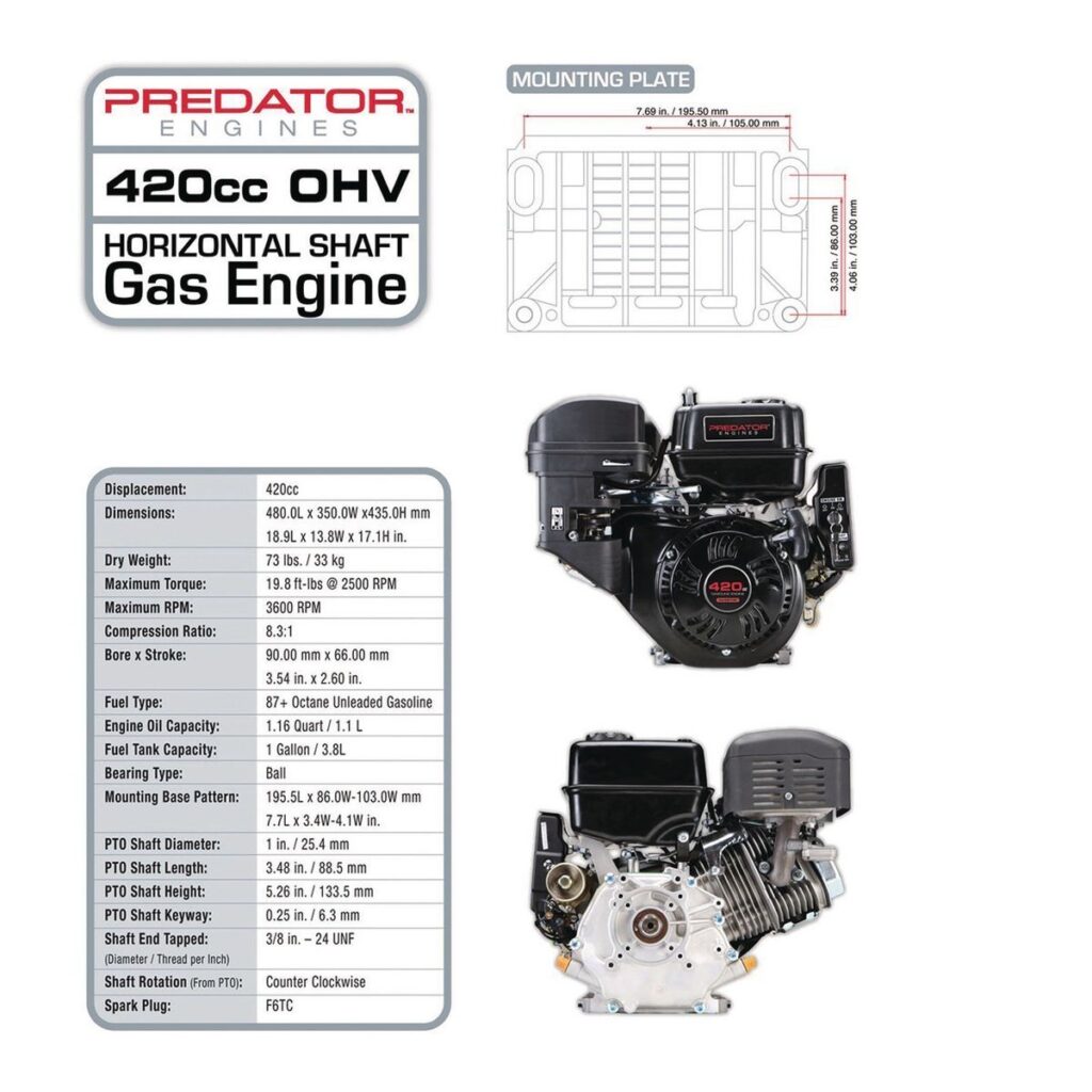 - Nuestro motor vertical Predator 420cc 13 HP es un excelente reemplazo para su Honda GX340, 389cc, Honda GX390, 389cc, Briggs & Stratton XR1650, 420cc, Briggs & Stratton XR2100, 420cc, Kohler CH440, 429cc, ECH440, 429cc, ECH440LE, 429cc, MZ360, 357cc, MX360, 358cc, MX400, 402cc