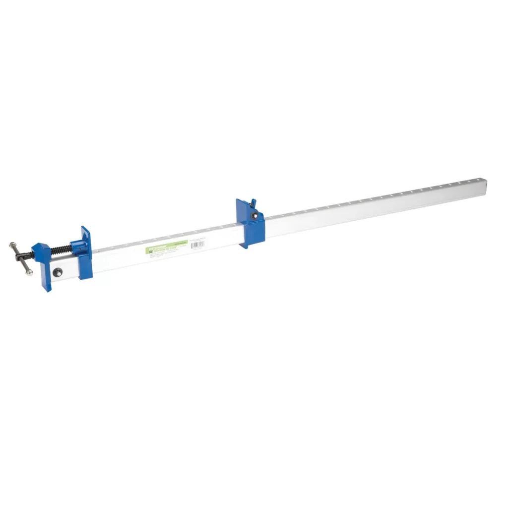Ideal para carpinteros, ebanistas o restauradores de muebles. Construida en aluminio resistente para ligereza y estabilidad, con mordazas de acero al carbón para sujeción firme y topes ajustables cada 2.5 cm (1″).