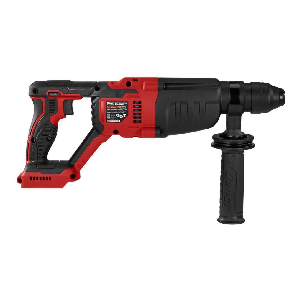El Rotomartillo inalámbrico tipo SDS-PLUS de 1 pulgada y sin escobillas BAUER™ de 20 V tiene la potencia de perforar 47 orificios por carga.* El motor de alta resistencia utiliza tecnología sin escobillas para mayor tiempo de funcionamiento y mayor vida útil de la herramienta. Este Rotomartillo utiliza retención de broca tipo SDS-PLUS para facilitar el cambio de broca y una sujeción segura mientras martilla. El agarre sobremolde proporciona menos vibración mientras golpea los materiales más duros.