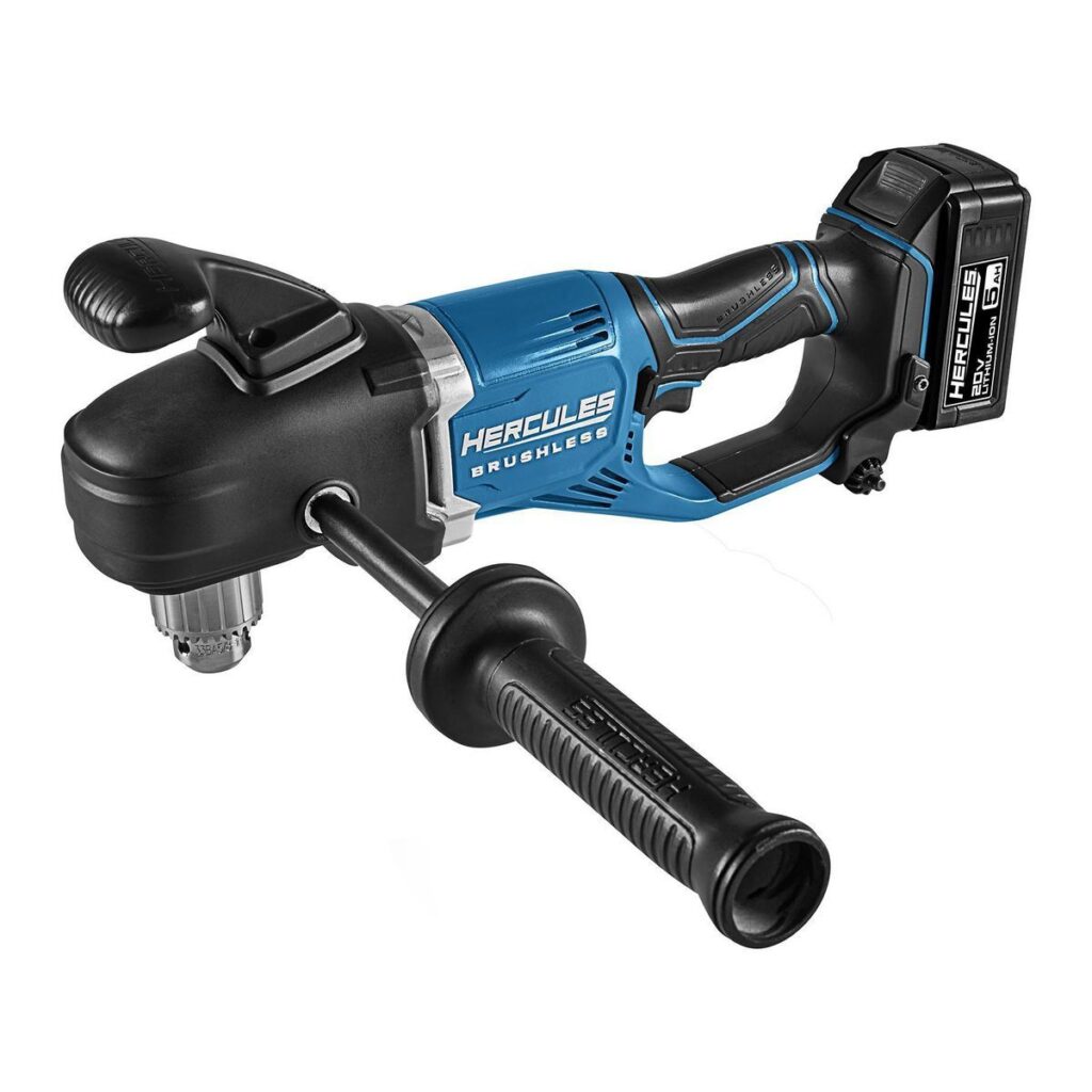 El taladro de ángulo recto de velocidad variable de 1/2 pulgada, inalámbrico y sin escobillas HERCULES® de 20 V es la configuración ideal para perforar en espacios reducidos entre montantes, vigas y más. El diseño equilibrado y compacto en ángulo recto tiene un gatillo protegido y un mango delantero para control. Se incluye un asa lateral opcional.