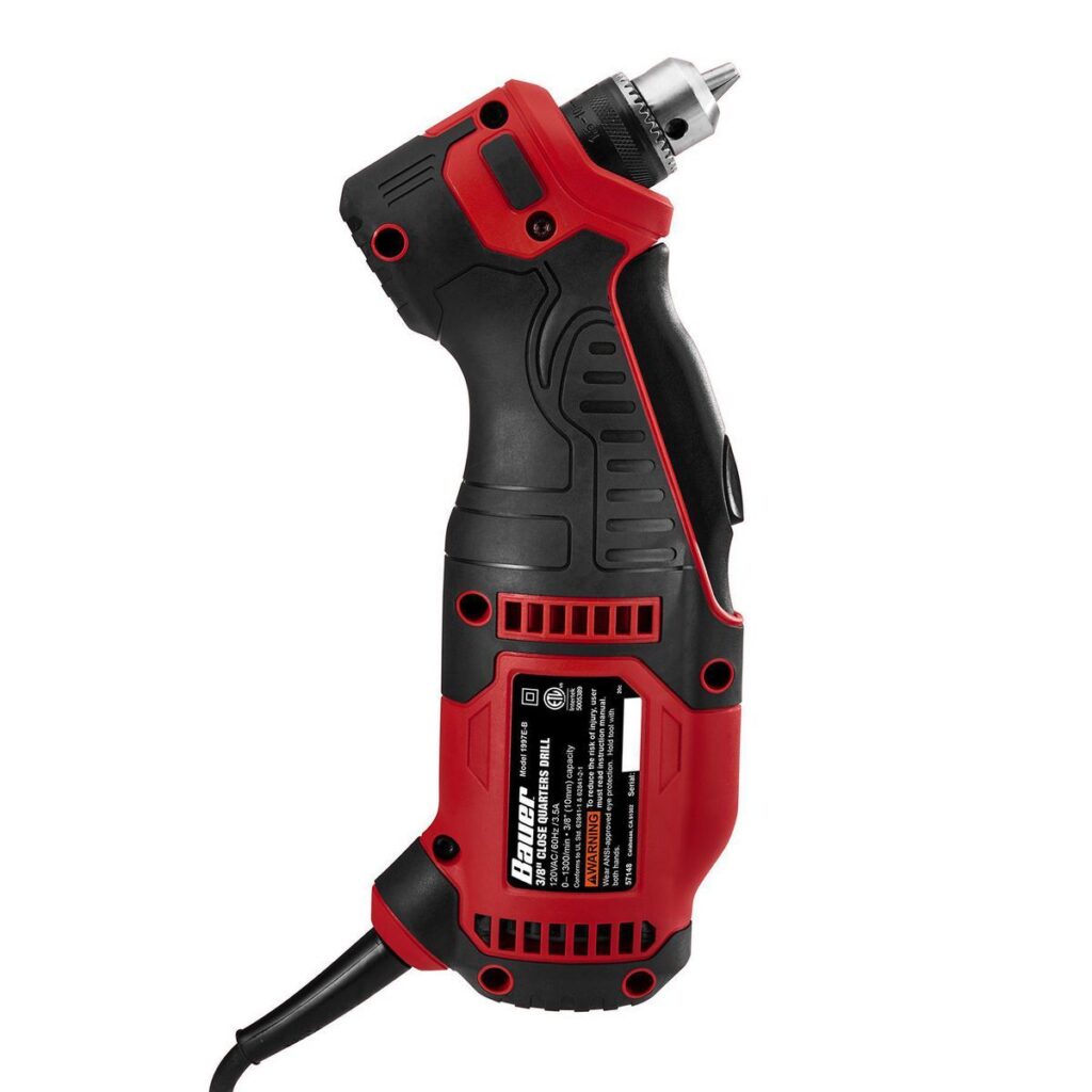 El taladro para espacios reducidos BAUER™ de 3/8 pulg. está diseñado para perforar fácilmente entre montantes y vigas. El gatillo de paleta grande proporciona máxima comodidad y control sin importar el agarre. El portabrocas con llave de 3/8 pulg. de alta resistencia proporciona la máxima retención para brocas grandes para taladrar madera. Construido con engranajes totalmente metálicos y una carcasa resistente a impactos, este taladro es capaz de resistir el abuso en el taller o en el lugar de trabajo.